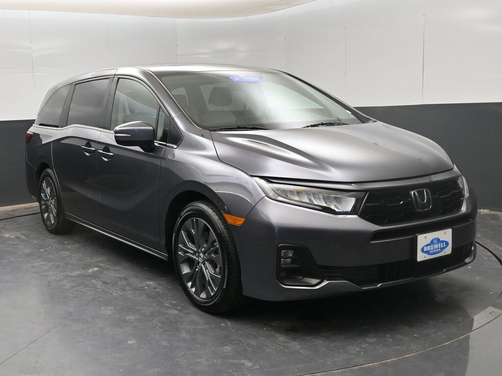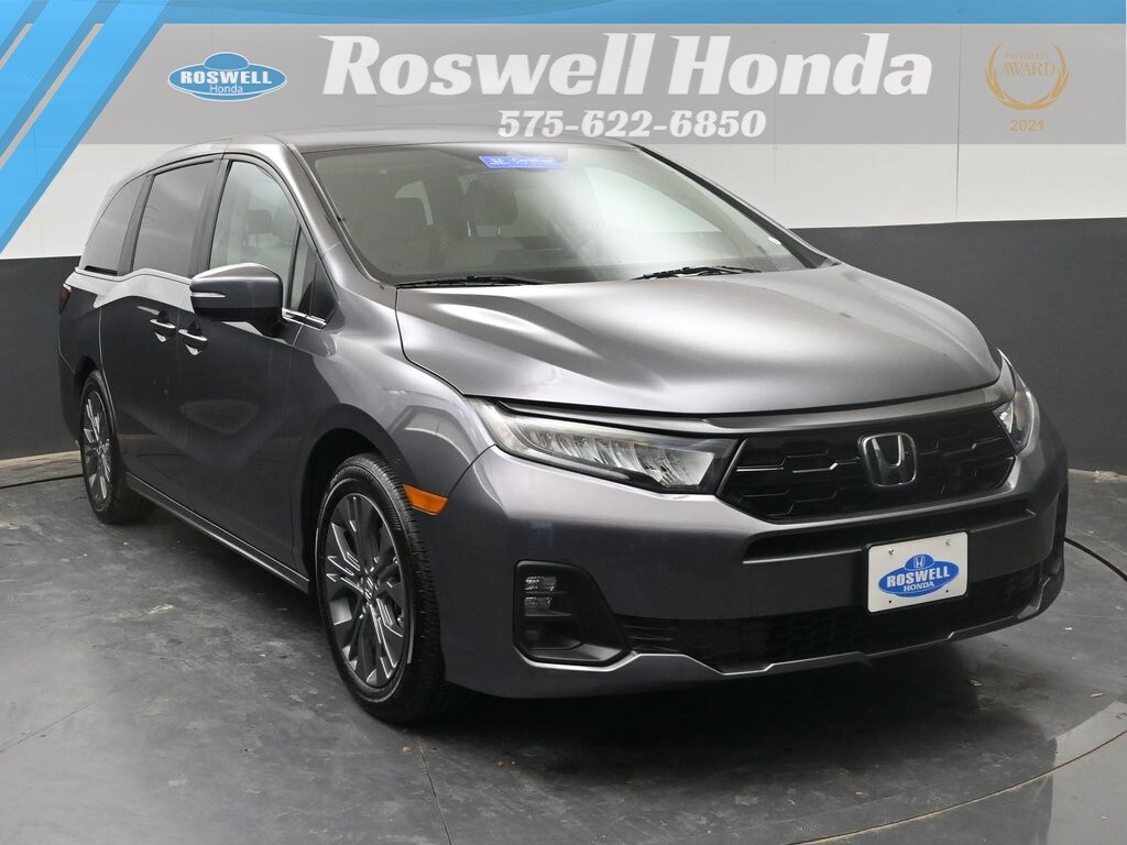 Roswell Honda has been proudly serving Roswell, Artesia, Carlsbad and Southeastern New Mexico for over 20 years. For more information on this vehicle please stop by the dealership at 2177 West Second Street or call us at 575-622-6850. This 2025 Honda Odyssey Touring is loaded with the following Factory Options:19" Silver Alloy Wheels, 3rd row seats: split-bench, 4-Wheel Disc Brakes, 7 Speakers, ABS brakes, Adaptive Cruise Control: Adaptive Cruise Control (ACC) with Low-Speed Follow, Air Conditioning, Alloy wheels, AM/FM radio: SiriusXM, Anti-whiplash front head restraints, Apple CarPlay/Android Auto, Auto High-beam Headlights, Auto-dimming Rear-View mirror, Automatic temperature control, Blind Spot Information (BSI) System warning, Brake assist, Bumpers: body-color, Compass, Delay-off headlights, Driver door bin, Driver vanity mirror, Driver's Seat Mounted Armrest, Dual front impact airbags, Dual front side impact airbags, Electronic Stability Control, Emergency communication system: HondaLink, Exterior Parking Camera Rear, Four wheel independent suspension, Front anti-roll bar, Front Bucket Seats, Front dual zone A/C, Front fog lights, Front reading lights, Fully automatic headlights, Garage door transmitter: HomeLink, Heated door mirrors, Heated Front Bucket Seats, Heated front seats, Illuminated entry, Knee airbag, Lane departure: Lane Keeping Assist System (LKAS) active, Leather steering wheel, Leather Trimmed Seats w/Piping, Low tire pressure warning, Memory seat, Navigation system: Honda Satellite-Linked Navigation System, Occupant sensing airbag, Outside temperature display, Overhead airbag, Overhead console, Panic alarm, Passenger door bin, Passenger seat mounted armrest, Passenger vanity mirror, Power door mirrors, Power driver seat, Power Liftgate, Power moonroof, Power passenger seat, Power steering, Power windows, Radio data system, Radio: 160-Watt AM/FM/HD/SiriusXM Audio System, Rear air conditioning, Rear anti-roll bar, Rear audio controls, Rear reading lights, Rear seat center armrest, Rear window defroster, Rear window wiper, Reclining 3rd row seat, Remote keyless entry, Security system, Speed control, Speed-sensing steering, Speed-Sensitive Wipers, Split folding rear seat, Spoiler, Steering wheel mounted audio controls, Tachometer, Telescoping steering wheel, Tilt steering wheel, Traction control, Trip computer, Turn signal indicator mirrors, and Variably intermittent wipers.