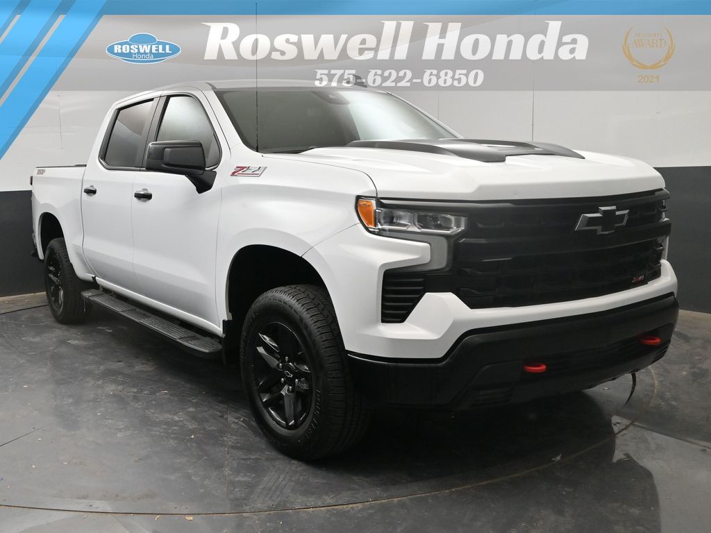 Roswell Honda has been proudly serving Roswell, Artesia, Carlsbad and Southeastern New Mexico for over 20 years. For more information on this vehicle please stop by the dealership at 2177 West Second Street or call us at 575-622-6850. This 2024 Chevrolet Silverado 1500 LT Trail Boss is loaded with the following Factory Options:Convenience Package (10-Way Power Driver Seat w/Lumbar, 120-Volt Bed Mounted Power Outlet, 120-Volt Interior Power Outlet, Dual Rear USB Ports (Charge Only), Dual-Zone Automatic Climate Control, Electric Rear-Window Defogger, Heated Driver & Front Outboard Passenger Seats, Heated Steering Wheel, Keyless Open & Start, Remote Vehicle Starter System, Theft Deterrent System (Unauthorized Entry), and Wrapped Steering Wheel), Preferred Equipment Group 2LT (12.3" Multicolor Reconfigurable Digital Display, 6-Speaker Audio System, All-Weather Floor Liner (LPO) (AAK), Auto-Locking Rear Differential, Bluetooth® For Phone, Chevrolet Connected Access Capable, Color-Keyed Carpeting Floor Covering, Deep-Tinted Glass, Electrical Steering Column Lock, Electronic Cruise Control, EZ Lift Power Lock & Release Tailgate, Front LED Fog Lamps, HD Rear Vision Camera, Heated Power-Adjustable Outside Mirrors, High Gloss Black Mirror Caps, Inside Rear-View Mirror w/Tilt, LED Cargo Area Lighting, OnStar & Chevrolet Connected Services Capable, Performance Red Recovery Hooks, Power Front Windows w/Driver Express Up/Down, Power Front Windows w/Passenger Express Down, Power Rear Windows w/Express Down, Rear 60/40 Folding Bench Seat (Folds Up), SiriusXM w/360L, Standard Tailgate, Steering Wheel Audio Controls, and Wi-Fi Hot Spot Capable), Protection Package (Chevytec Spray-On Black Bedliner and Rear Wheelhouse Liners), Suspension Package (Heavy-Duty Air Filter and Hill Descent Control), Trailering Package (Hitch Guidance), 170 Amp Alternator, 2 USB Data Ports, 220 Amp Alternator, 4-Wheel Disc Brakes, 40/20/40 Front Split-Bench Seat, 6 Speakers, 6" Rectangular Black Tubular Assist Steps (LPO), ABS brakes, Air Conditioning, Alloy wheels, AM/FM radio: SiriusXM with 360L, Auto High-beam Headlights, Automatic Emergency Braking, Automatic temperature control, Auxiliary External Transmission Oil Cooler, Brake assist, Cloth Seat Trim, Compass, Delay-off headlights, Driver door bin, Driver vanity mirror, Dual Exhaust w/Polished Outlets, Dual front impact airbags, Dual front side impact airbags, Electronic Stability Control, Electronic Transmission Range Selector Shifter, External Engine Oil Cooler, Floor Mounted Center Console, Following Distance Indicator, Forward Collision Alert, Front anti-roll bar, Front Bucket Seats, Front Center Armrest w/Storage, Front dual zone A/C, Front fog lights, Front Pedestrian Braking, Front reading lights, Front wheel independent suspension, Fully automatic headlights, Heated door mirrors, Heated front seats, Heated steering wheel, Illuminated entry, Integrated Trailer Brake Controller, IntelliBeam Automatic High Beam On/Off, Lane Keep Assist w/Lane Departure Warning, Low tire pressure warning, Occupant sensing airbag, Outside temperature display, Overhead airbag, Overhead console, Panic alarm, Passenger door bin, Passenger vanity mirror, Power door mirrors, Power driver seat, Power steering, Power windows, Premium audio system: Chevrolet Infotainment 3 Premium, Radio data system, Radio: Chevrolet Infotainment 3 Premium System, Rear reading lights, Rear step bumper, Rear window defroster, Remote keyless entry, Security system, Single Outlet Exhaust, Speed control, Speed-sensing steering, Split folding rear seat, Steering wheel mounted audio controls, Tachometer, Telescoping steering wheel, Tilt steering wheel, Traction control, Trip computer, Variably intermittent wipers, Voltmeter, Wheels: 18" x 8.5" Black Painted Aluminum, and Wirele