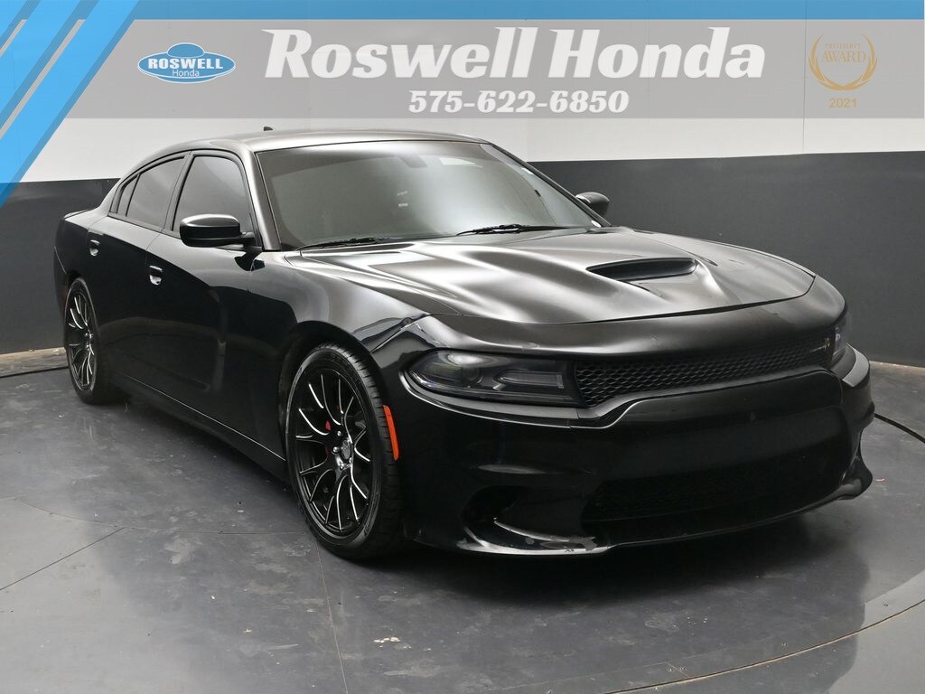 Roswell Honda has been proudly serving Roswell, Artesia, Carlsbad and Southeastern New Mexico for over 20 years. For more information on this vehicle please stop by the dealership at 2177 West Second Street or call us at 575-622-6850. This 2017 Dodge Charger R/T Scat Pack is loaded with the following Factory Options:Driver Confidence Group (ParkSense Rear Park Assist System), Quick Order Package 21W R/T Scat Pack, 1-Yr SiriusXM Guardian Trial, 4-Wheel Disc Brakes, 5-Year SiriusXM Traffic Service, 5-Year SiriusXM Travel Link Service, 6 Speakers, 8.4" Touchscreen Display, ABS brakes, Air Conditioning, Alloy wheels, AM/FM radio: SiriusXM, Anti-whiplash front head restraints, Apple CarPlay/Android Auto, Auto-Dimming Exterior Driver Mirror, Auto-dimming Rear-View mirror, Automatic temperature control, Blind Spot & Cross Path Detection, Brake assist, Bumpers: body-color, Cloth Performance Seats, Compass, Delay-off headlights, Driver door bin, Driver vanity mirror, Dual front impact airbags, Dual front side impact airbags, Electronic Stability Control, Emergency communication system: Uconnect Access, Exterior Mirrors Courtesy Lamps, Exterior Mirrors w/Heating Element, For Details, Visit DriveUconnect.com, Four wheel independent suspension, Front anti-roll bar, Front Bucket Seats, Front Center Armrest, Front dual zone A/C, Front fog lights, Front reading lights, Fully automatic headlights, Garage door transmitter: HomeLink, GPS Antenna Input, Illuminated entry, Integrated Center Stack Radio, Integrated Voice Command w/Bluetooth, Leather Shift Knob, Low tire pressure warning, Manufacturer's Statement of Origin, Occupant sensing airbag, Outside temperature display, Overhead airbag, Overhead console, Panic alarm, ParkView Rear Back-Up Camera, Passenger door bin, Passenger vanity mirror, Power door mirrors, Power driver seat, Power Driver/Passenger 4-Way Lumbar Adjust, Power passenger seat, Power steering, Power Sunroof, Power windows, Radio data system, Radio: Uconnect 4C Nav w/8.4" Display, Radio: Uconnect 4C w/8.4" Display, Rear anti-roll bar, Rear reading lights, Rear seat center armrest, Rear window defroster, Remote keyless entry, Rhombi 2-Pc Wheel Center Cap, Security system, SiriusXM Satellite Radio, SiriusXM Traffic Plus, SiriusXM Travel Link, Speed control, Speed-Sensitive Wipers, Split folding rear seat, Spoiler, Steering wheel mounted audio controls, Tachometer, Telescoping steering wheel, Tilt steering wheel, Traction control, Trip computer, USB Host Flip, Variably intermittent wipers, Wheels: 20" x 9.0" Alum Machined Face/Satin Black, and Wheels: 20" x 9.0" Forged/Painted AluminuM.