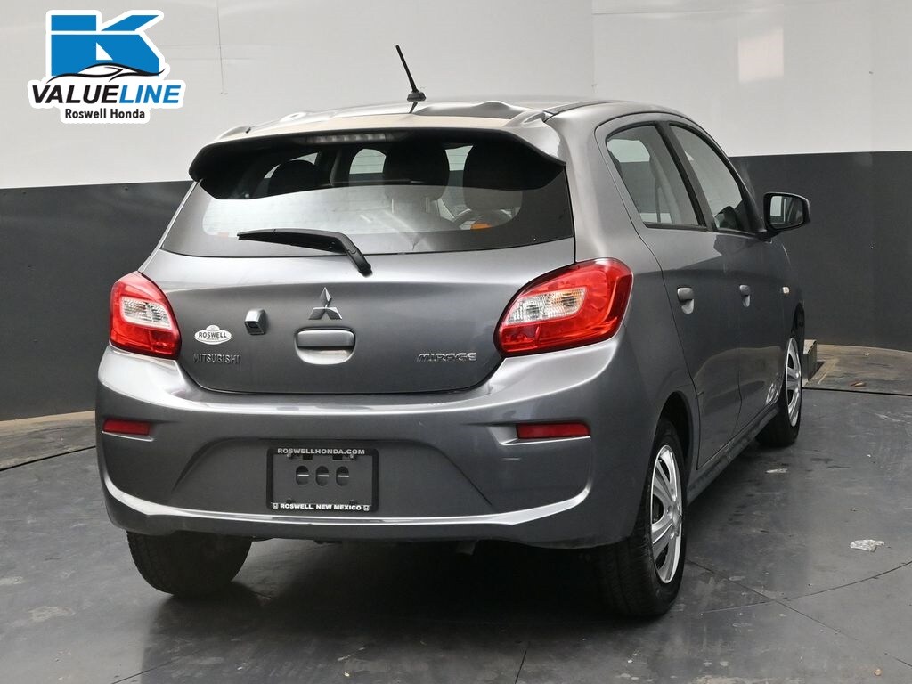 Roswell Honda has been proudly serving Roswell, Artesia, Carlsbad and Southeastern New Mexico for over 20 years. For more information on this vehicle please stop by the dealership at 2177 West Second Street or call us at 575-622-6850. This 2018 Mitsubishi Mirage ES is loaded with the following Factory Options:4 Speakers, ABS brakes, Air Conditioning, AM/FM radio, Brake assist, Bumpers: body-color, Cloth Fabric Seating Surfaces, Driver door bin, Driver vanity mirror, Dual front impact airbags, Dual front side impact airbags, Electronic Stability Control, Exterior Parking Camera Rear, Front anti-roll bar, Front Bucket Seats, Front reading lights, Front wheel independent suspension, Illuminated entry, Knee airbag, Low tire pressure warning, Occupant sensing airbag, Overhead airbag, Panic alarm, Passenger door bin, Power door mirrors, Power steering, Power windows, Radio: AM/FM Display Audio, Rear window defroster, Rear window wiper, Remote keyless entry, Split folding rear seat, Spoiler, Steering wheel mounted audio controls, Tachometer, Tilt steering wheel, Traction control, Trip computer, Variably intermittent wipers, and Wheels: 14" Steel w/Wheel Covers.