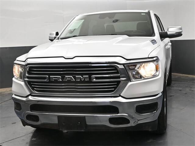 THIS VEHICLE COMES WITH THE FOLLOWING FEATURES AND OPTIONS : Quick Order Package 27H Laramie, 10 Speakers, 3 Rear Seat Head Restraints, 3.21 Rear Axle Ratio, 4 Way Front Headrests, 4-Wheel Disc Brakes, 48V Belt Starter Generator, 4G LTE Wi-Fi Hot Spot, ABS brakes, Air Conditioning, Alloy wheels, AM/FM radio: SiriusXM with 360L, Apple CarPlay, Apple CarPlay/Android Auto, Audio memory, Auto-dimming door mirrors, Auto-Dimming Exterior Driver Mirror, Auto-dimming Rear-View mirror, Automatic temperature control, Brake assist, Bumpers: chrome, Chrome Exterior Mirrors, Compass, Connected Travel & Traffic Services, Connectivity - US/Canada, Convex Wide-Angle Exterior Mirror Insert, Delay-off headlights, Driver door bin, Driver Seat Memory, Driver vanity mirror, Dual front impact airbags, Dual front side impact airbags, Electronic Stability Control, Exterior Mirrors Courtesy Lamps, Exterior Mirrors w/Heating Element, Exterior Mirrors w/Memory, Exterior Mirrors w/Supplemental Signals, For Details, Visit DriveUconnect.com, For More Info, Call 800-643-2112, Front anti-roll bar, Front Center Armrest w/Storage, Front dual zone A/C, Front fog lights, Front License Plate Bracket, Front reading lights, Front Seat Back Map Pockets, Front wheel independent suspension, Fully automatic headlights, Garage door transmitter, Global Telematics Box Module (TBM), Google Android Auto, GPS Navigation, HD Radio, Heated door mirrors, Heated Front Seats, Heated front seats, Heated Steering Wheel, Heated steering wheel, Illuminated entry, Integrated Voice Command w/Bluetooth, Leather steering wheel, Leather Trim 40/20/40 Bench Seat, Low tire pressure warning, Manufacturer's Statement of Origin, Memory seat, Navigation System, Occupant sensing airbag, Outside temperature display, Overhead airbag, Overhead console, Panic alarm, ParkView Rear Back-Up Camera, Passenger door bin, Passenger vanity mirror, Power 2-Way Driver Lumbar Adjust, Power 2-Way Passenger Lumbar Adjust, Power 8-Way Driver & Passenger Seats, Power door mirrors, Power driver seat, Power passenger seat, Power steering, Power windows, Power-Folding Mirrors, Radio data system, Radio: Uconnect 5 Nav w/8.4" Display, RAM Grille Badge - Chrome, Rear 60/40 Folding Seat, Rear anti-roll bar, Rear seat center armrest, Rear step bumper, Remote keyless entry, Security system, SiriusXM Radio Service, SiriusXM w/360L, Speed control, Split folding rear seat, Steering wheel mounted audio controls, Tachometer, Telescoping steering wheel, Tilt steering wheel, Traction control, Trip computer, Turn signal indicator mirrors, USB Host Flip, Variably intermittent wipers, Ventilated Front Seats, Ventilated front seats, Voltmeter, and Wheels: 18" x 8" Aluminum Base PainteD. 4WD 8-Speed Automatic HEMI 5.7L V8 Multi Displacement VVT eTorque